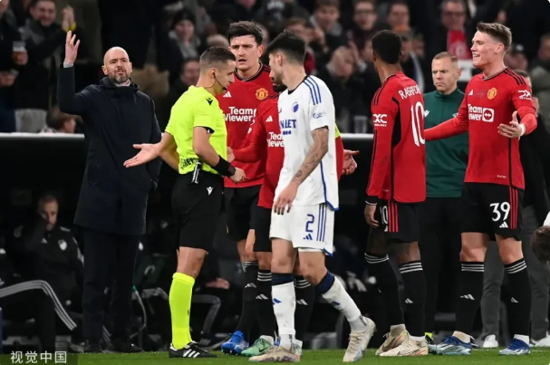 昨夜的帕肯球场,曼联3分钟便早早取得领先,28分钟霍伊伦德完成梅开二度。然而,拉什福德在上半场结束前因为踩踏对手脚踝而被主裁红牌罚下,这判罚也成了整场比赛的转折点。第45分钟,B费与麦克托米奈之间协防出现失误,漏人最终导致丢球。上半场补时第6分钟,马奎尔禁区手球送点,哥本哈根不可思议地在回到更衣室前扳平了比分。